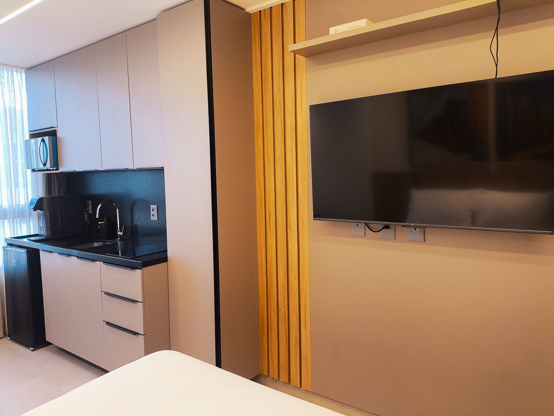 Tomada elétrica próxima à cama