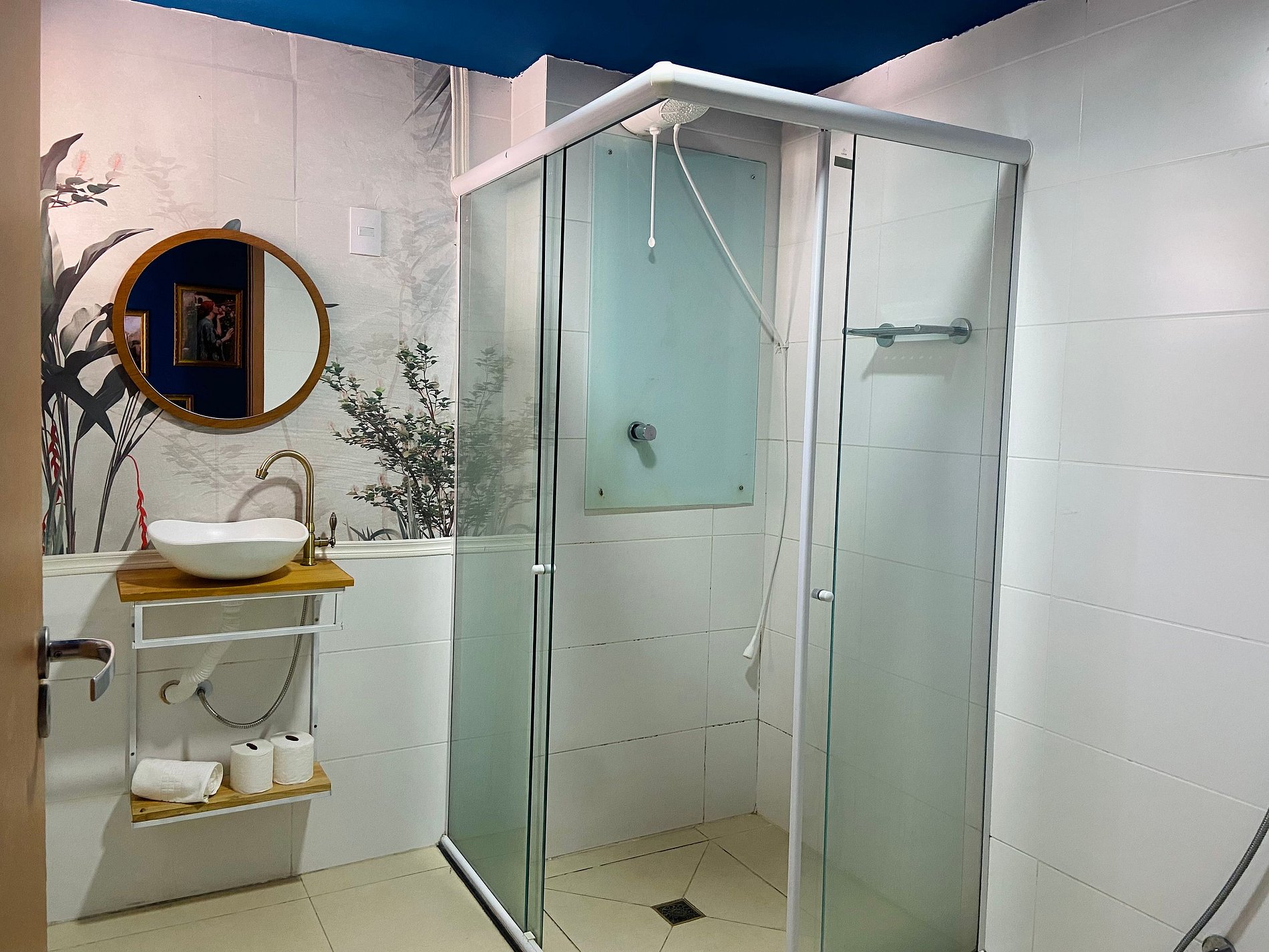 O apartamento é um espaço super aconchegante, que o fará se sentir em casa. Sala com puffs, sofá-cama, SmarTv e armário com revistas e ar condicionado. Mesa de jantar e cozinha completa, com todos eletrodomésticos e utensílios necessários (fogão, geladeira, microondas, liquidificador, sanduicheira, panelas, talheres, etc). Banheiro amplo com chuveiro elétrico. Quarto com guarda-roupas, SmarTv e ar.