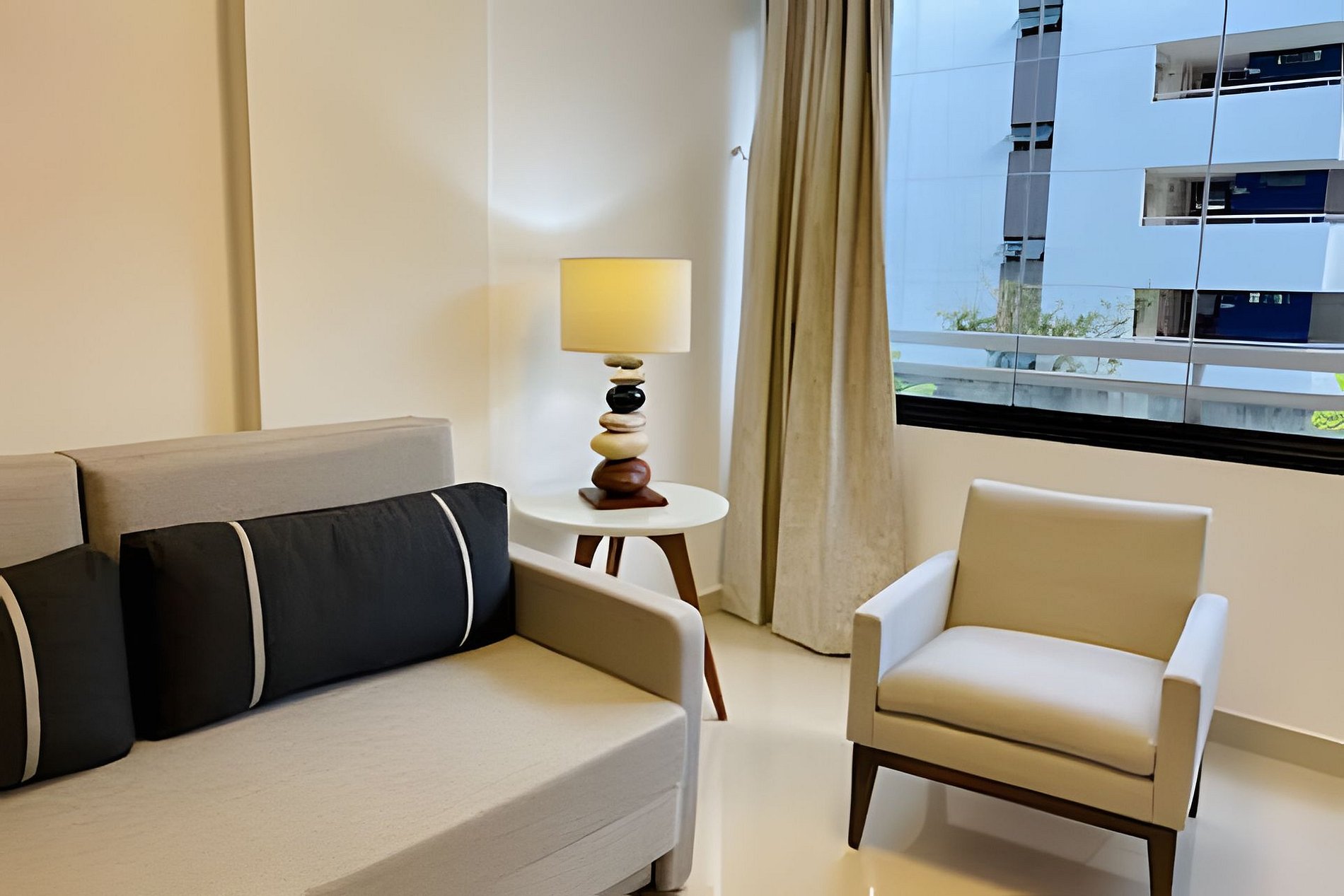 Sinta-se em casa com a sua família num dos nossos apartamentos completos de 3 quartos ou 4 quartos, sendo duas suítes, com cozinha completa num edifício aconchegante com piscina e churrasqueira a poucos metros da praia de Cabo Branco.