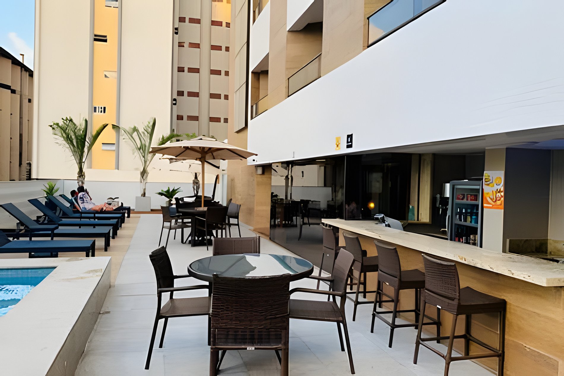 O apartamento é um espaço extremamente confortável, contando no quarto uma cama de casal, uma de solteiro e colchão extra. Além disso, possui smart tv e canais à cabo, cozinha completa para preparação de alimentos, mesa para refeições ou estudo e um banheiro. O ap faz parte do Gold Flat, que conta com a rede de hotéis Littoral, e compartilha os seguintes serviços com este: limpeza de quarto, internet, recepção 24h, lavanderia, restaurante e bar.