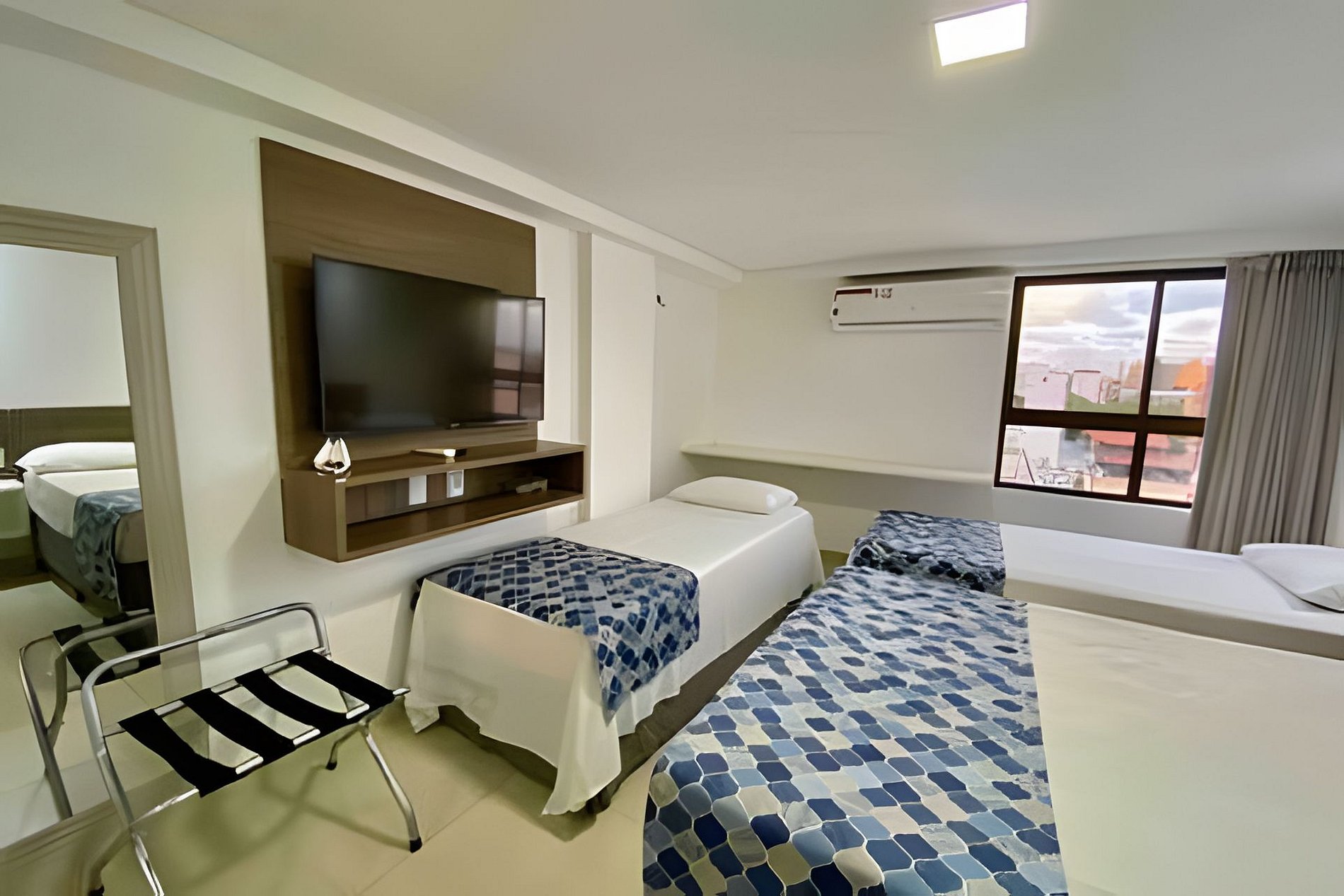 O apartamento é um espaço compacto e confortável, contando com uma cama de casal e duas de solteiro, smartv e canais a cabo, cozinha completa para preparação de alimentos, mesa com duas cadeiras e banheiro com chuveiro com água quente. O apartamento faz parte do Gold Flat, que conta com a rede de hotéis Littoral, compartilhando seus serviços: limpeza de quarto, internet, tv à cabo, recepção 24h, lavanderia, restaurante e bar, tudo ao seu dispor.