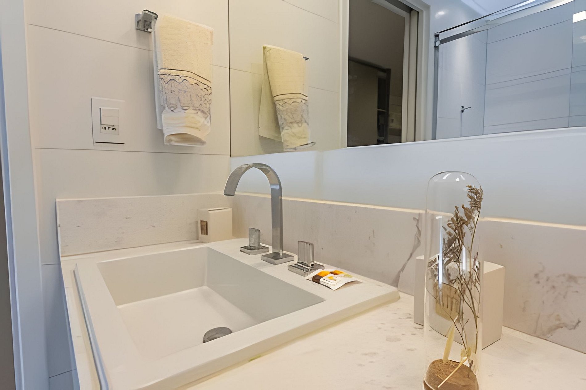 Todas as portas do apartamento são de vidro duplo, que o isolam acusticamente e mantém a temperatura interna por mais tempo.