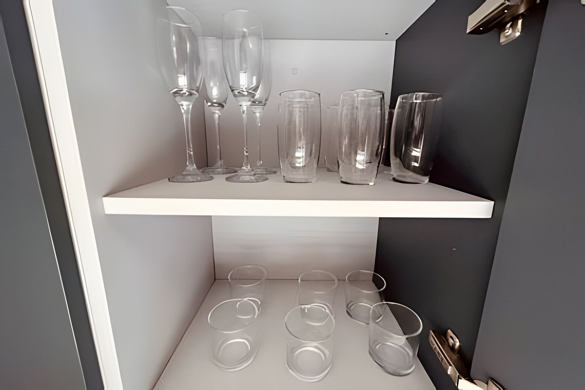 Todas as portas do apartamento são de vidro duplo, que o isolam acusticamente e mantém a temperatura interna por mais tempo.