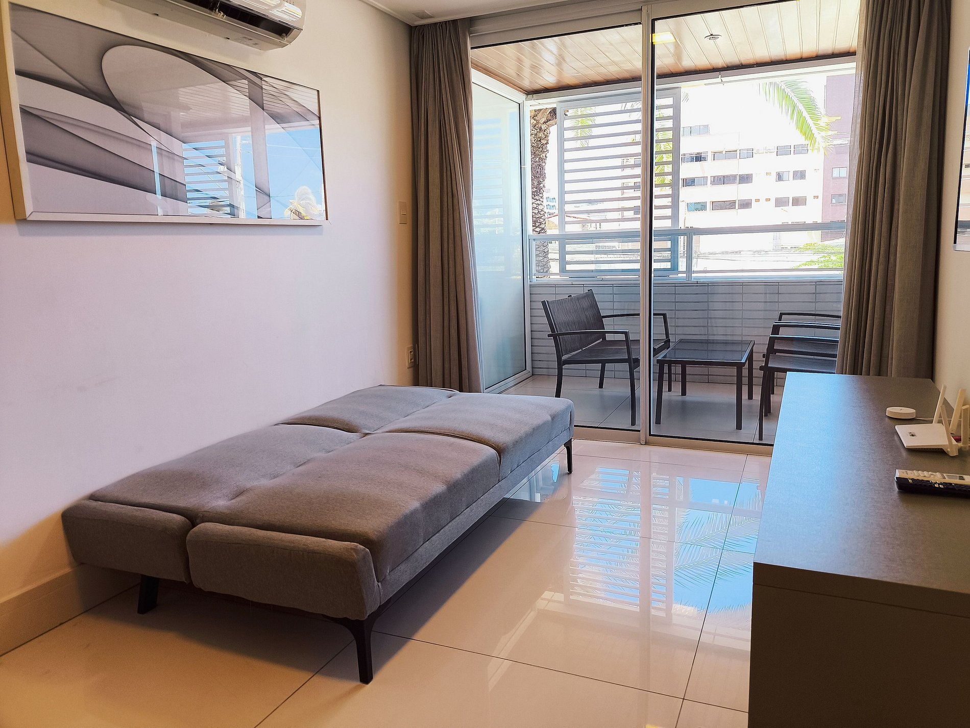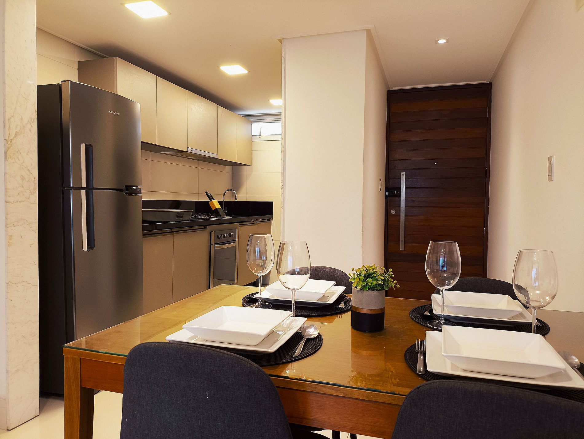 Todas as portas do apartamento são de vidro duplo, que o isolam acusticamente e mantém a temperatura interna por mais tempo.