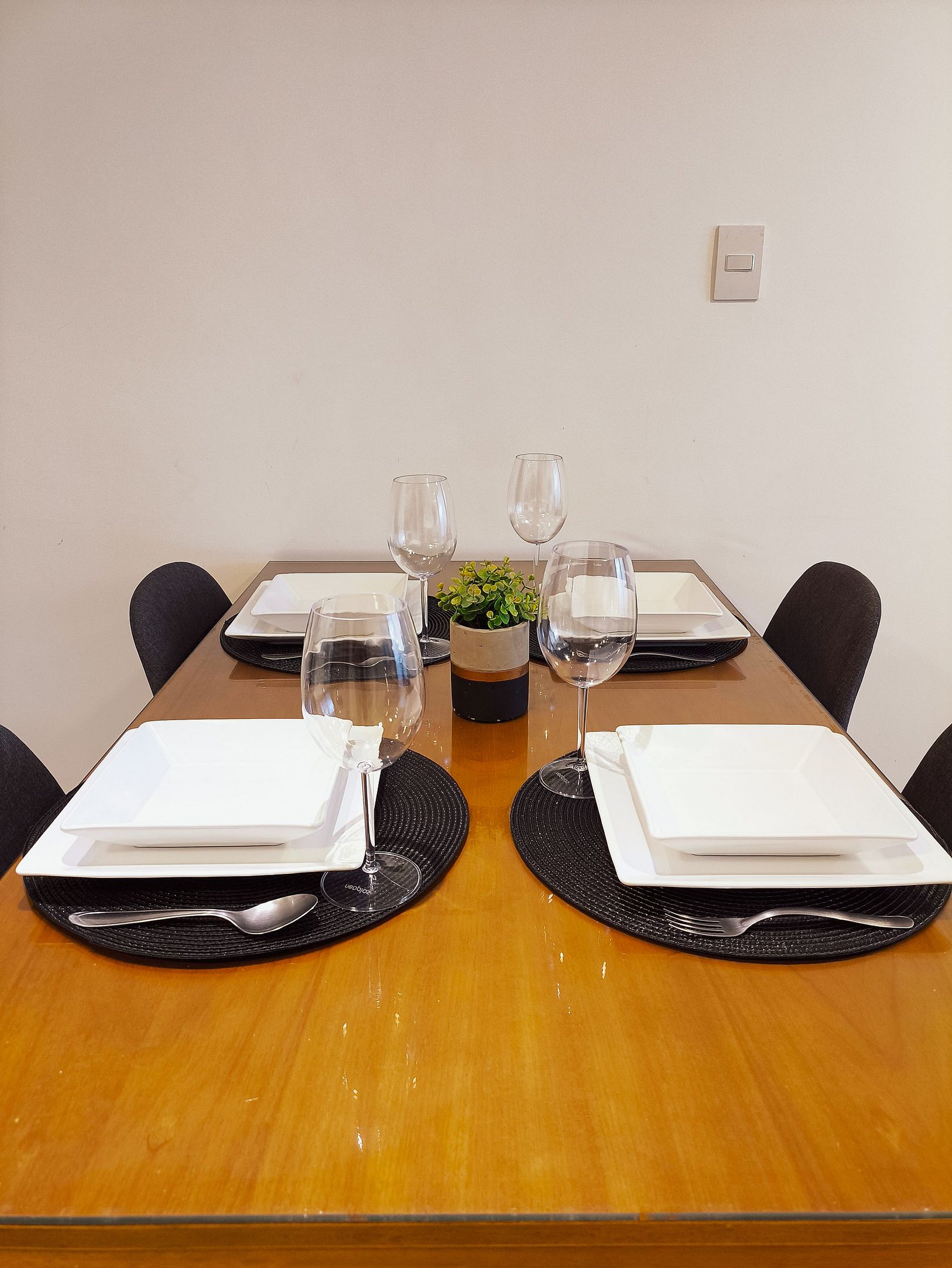 O apartamento possui uma suíte disponível para os hóspedes, com cama queen size, escrivaninha para trabalho e SmarTv. Sala de estar com sofá cama, puffs, smart tv e ar condicionado, mesa com quatro cadeiras, cozinha completa com talheres, potes e panelas. Há um segundo banheiro: o social. Por fim, um segundo quarto com cama de solteiro.