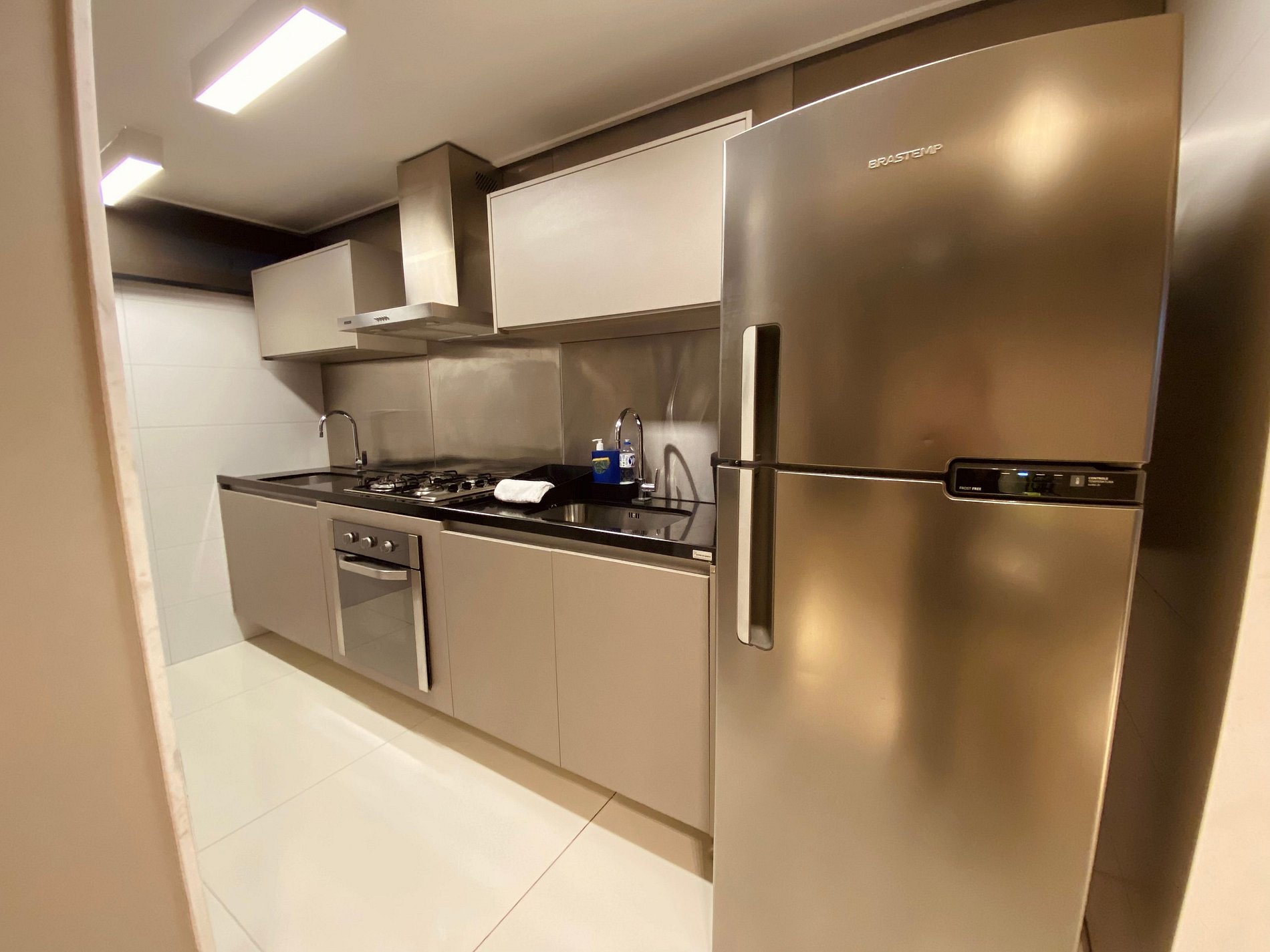 Ao entrar no Apartamento All Black, você será imediatamente envolvido por uma atmosfera de elegância e classe. A sala de estar é um espaço amplo e aberto, com móveis de design moderno e uma decoração refinada que exala um charme único. O contraste das mobília escura com a iluminação suave cria um ambiente acolhedor e requintado, perfeito para relaxar após um dia explorando a cidade. A cozinha é um sonho para os amantes da culinária, equipada com eletrodomésticos de última geração, utensílios de cozinha e uma área de jantar elegante. Prepare suas refeições em um ambiente que combina funcionalidade e estilo, e desfrute de uma refeição em uma mesa que complementa a estética sofisticada do apartamento. O quarto principal oferece uma experiência de sono luxuosa com uma cama queen-size revestida em roupas de cama de alta qualidade e um ambiente que promove relaxamento absoluto. O segundo quarto, igualmente elegante, é perfeito para amigos ou familiares, com camas confortáveis e uma decoração que mantém a harmonia com o restante do apartamento.
