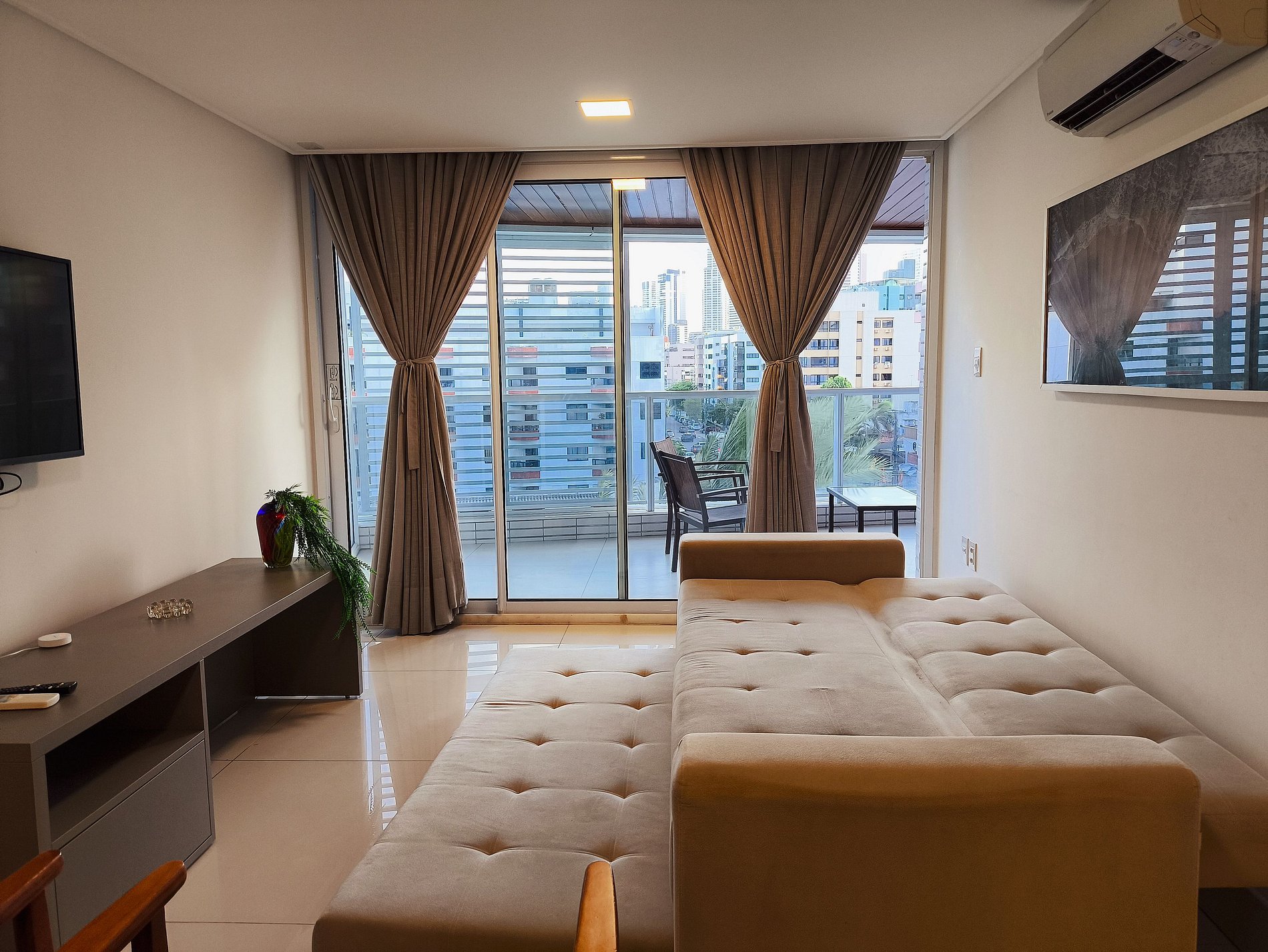 Todas as portas do apartamento são de vidro duplo, que o isolam acusticamente e mantém a temperatura interna por mais tempo.