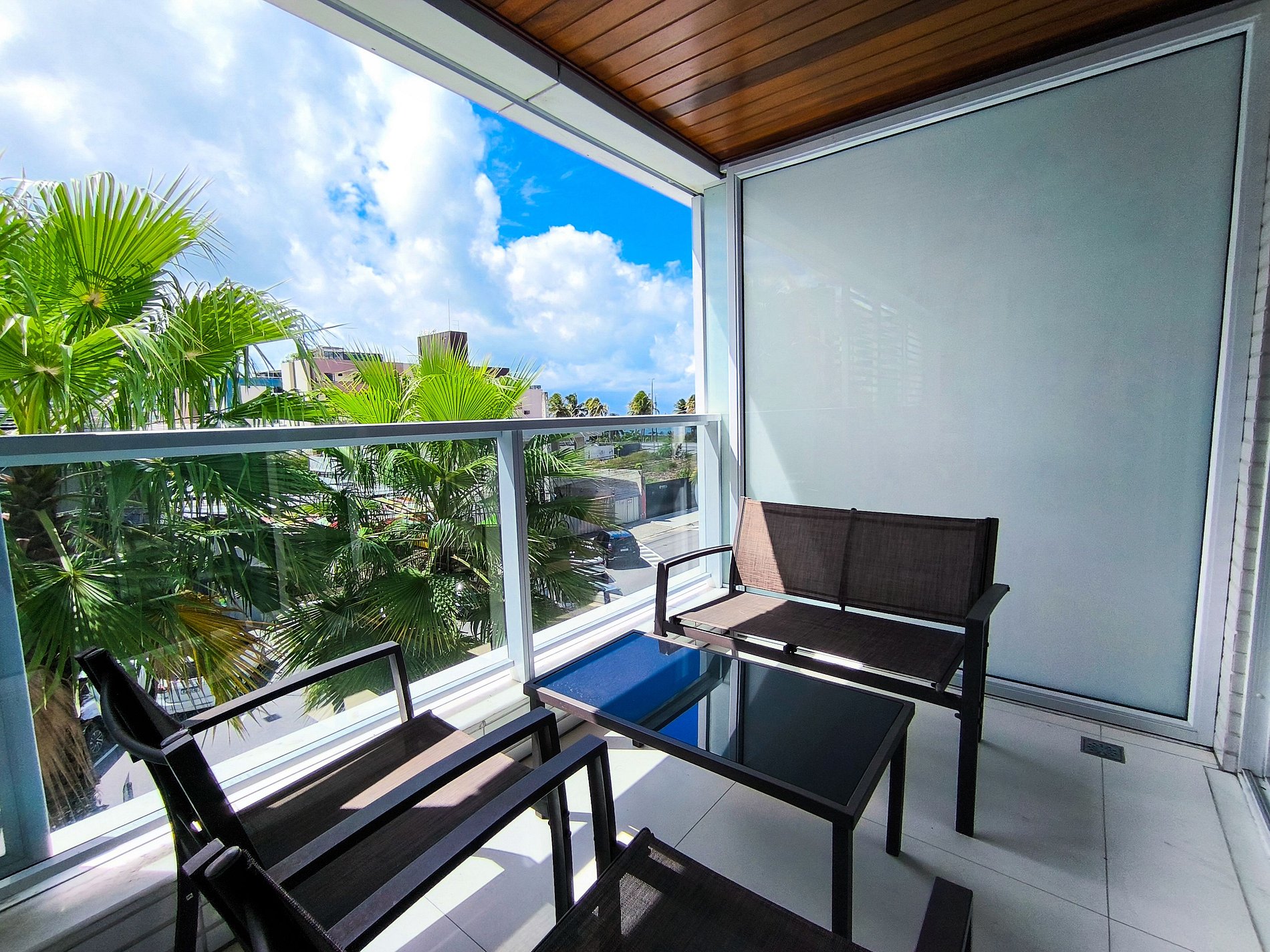 Todas as portas do apartamento são de vidro duplo, que o isolam acusticamente e mantém a temperatura interna por mais tempo.