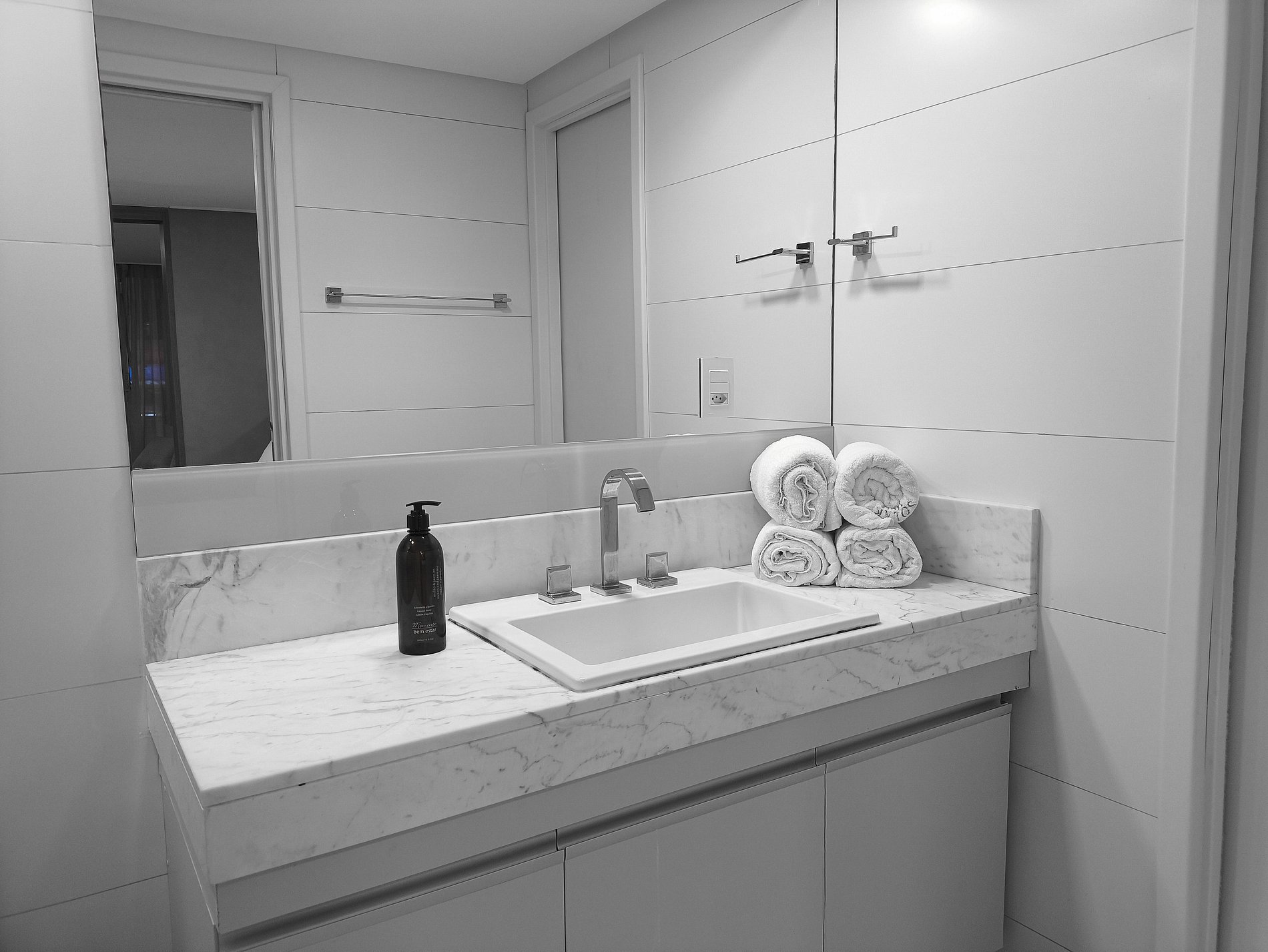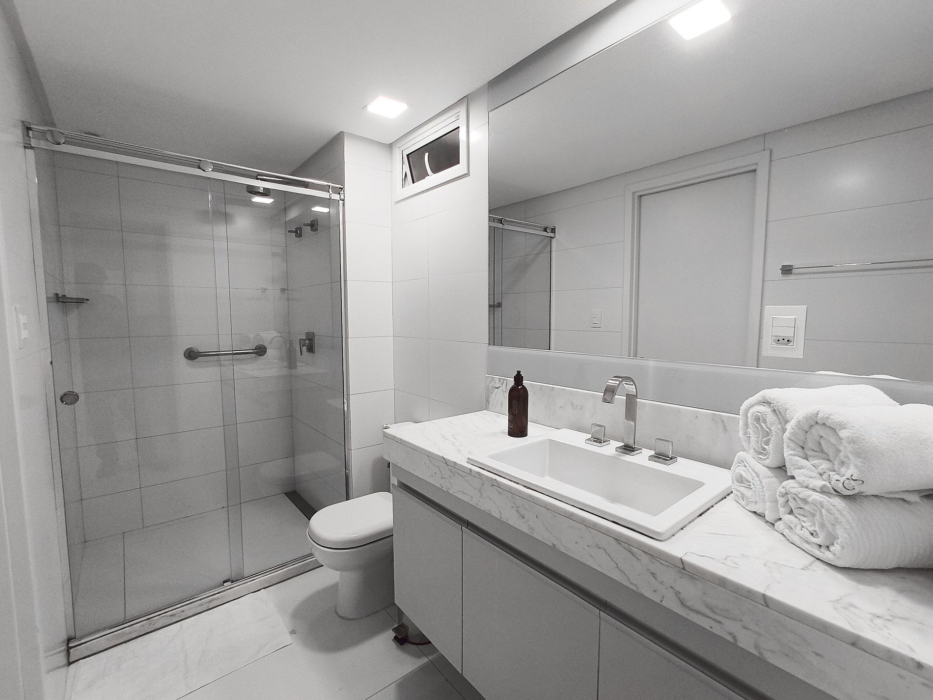 Todas as portas do apartamento são de vidro duplo, que o isolam acusticamente e mantém a temperatura interna por mais tempo.