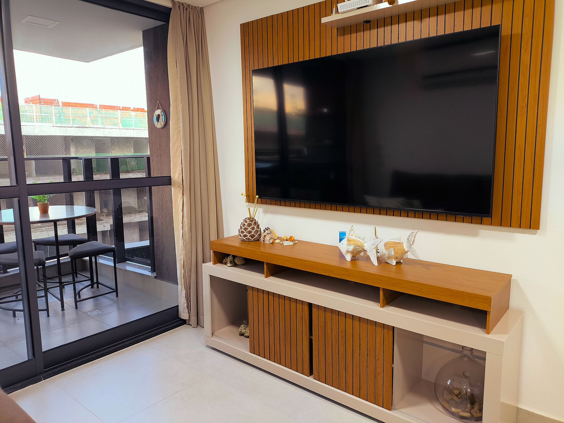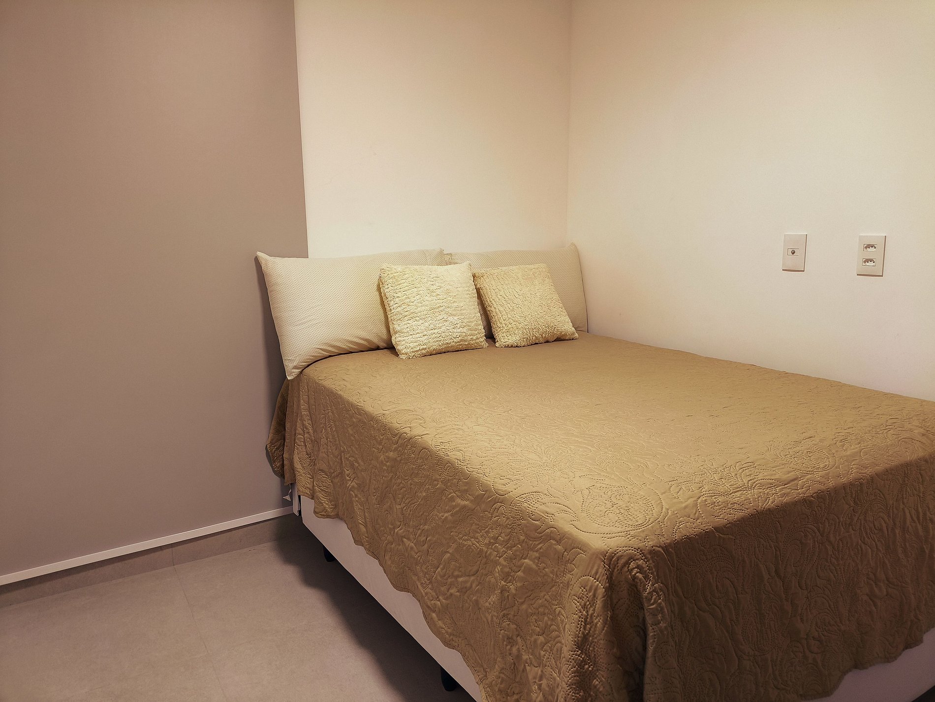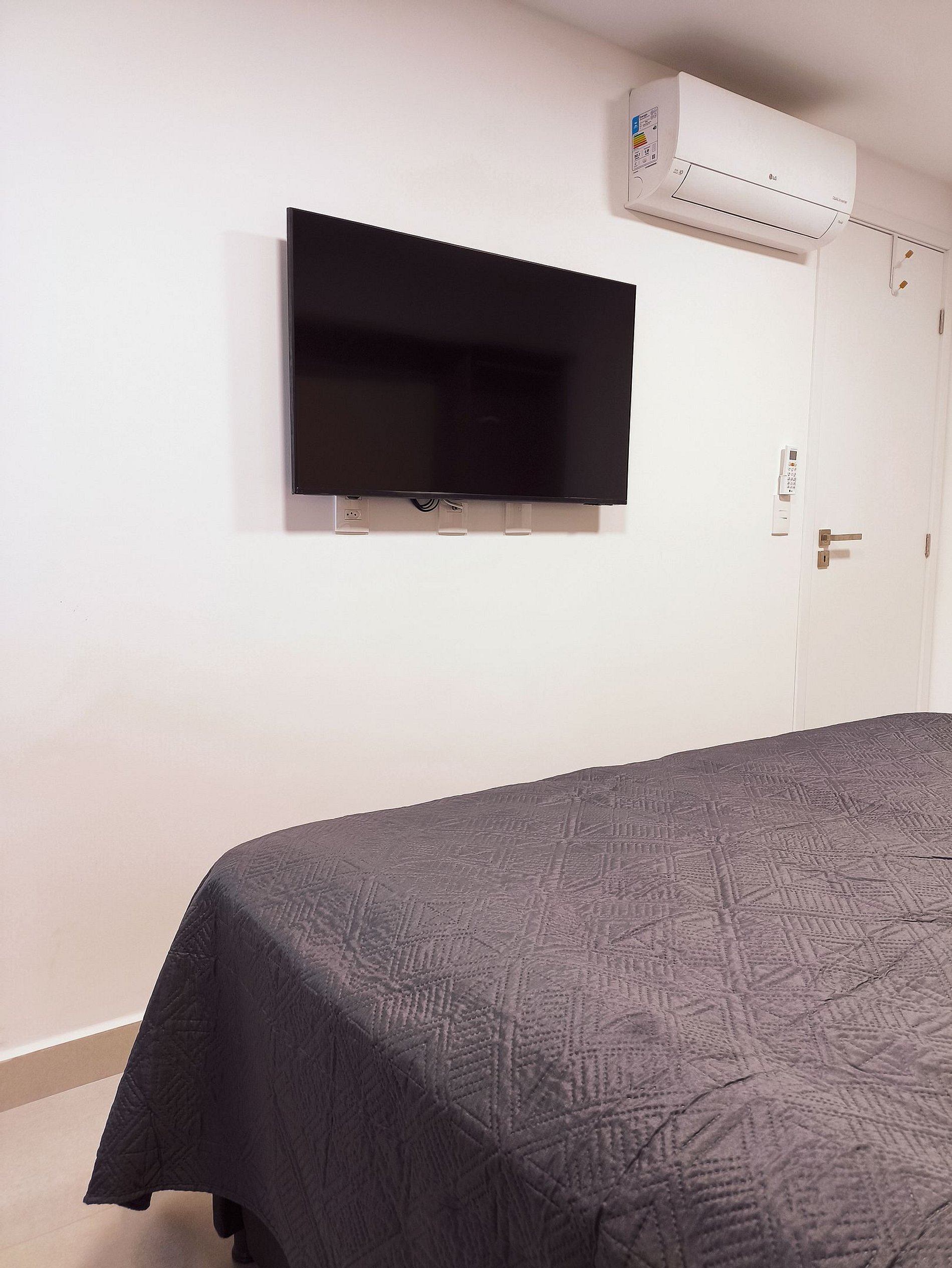 Na suíte, o apartamento dispõe ainda de TV, oferecendo mais comodidade e praticidade para os hóspedes.
