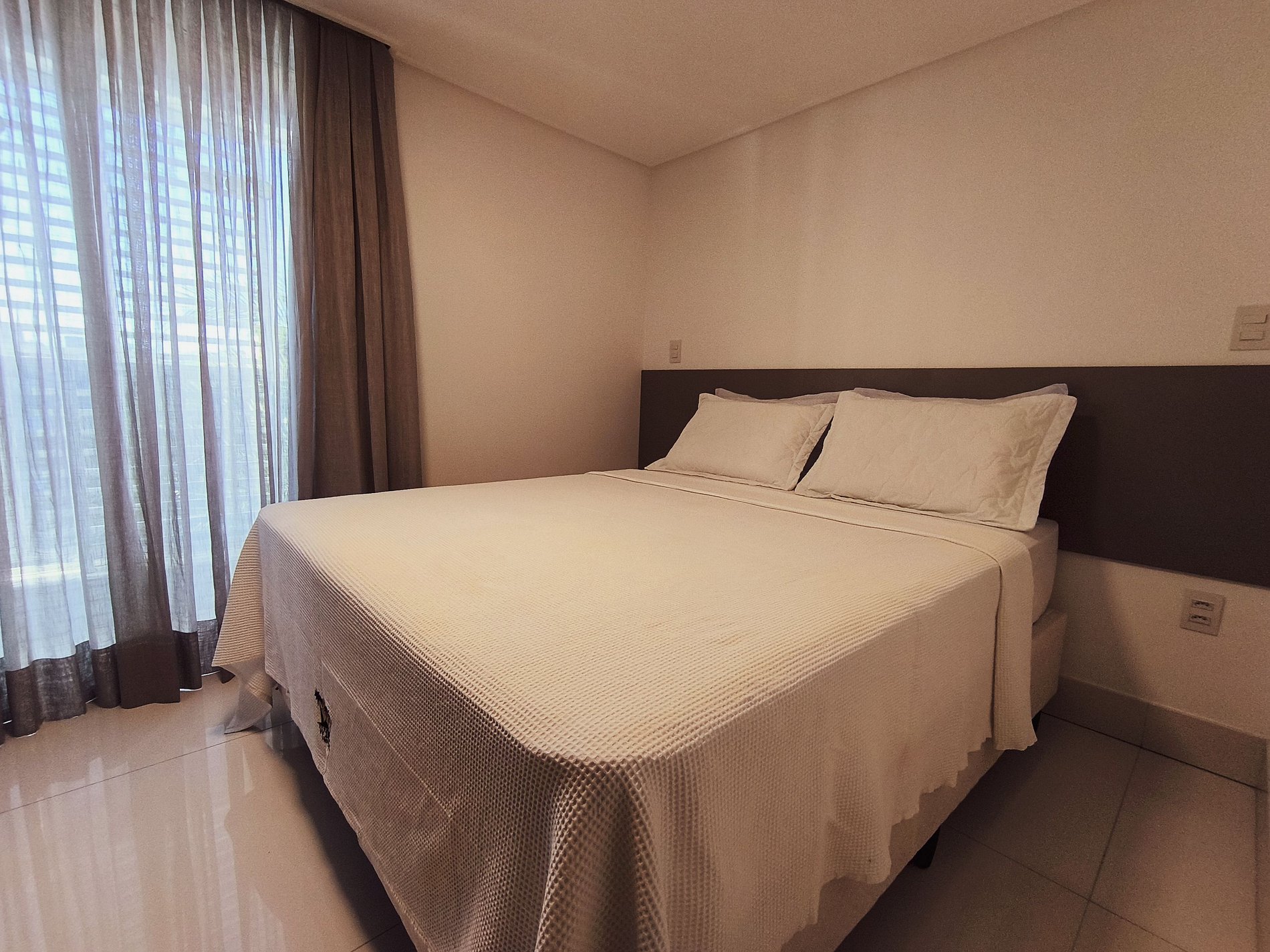 O apartamento possui uma suíte disponível para os hóspedes, com cama queen size, escrivaninha para trabalho e SmarTv. Sala de estar com sofa, smart tv e ar condicionado, mesa com quatro cadeiras, cozinha completa com talheres, potes e panelas. Há um segundo banheiro: o social. Por fim, um segundo quarto com cama de casal.