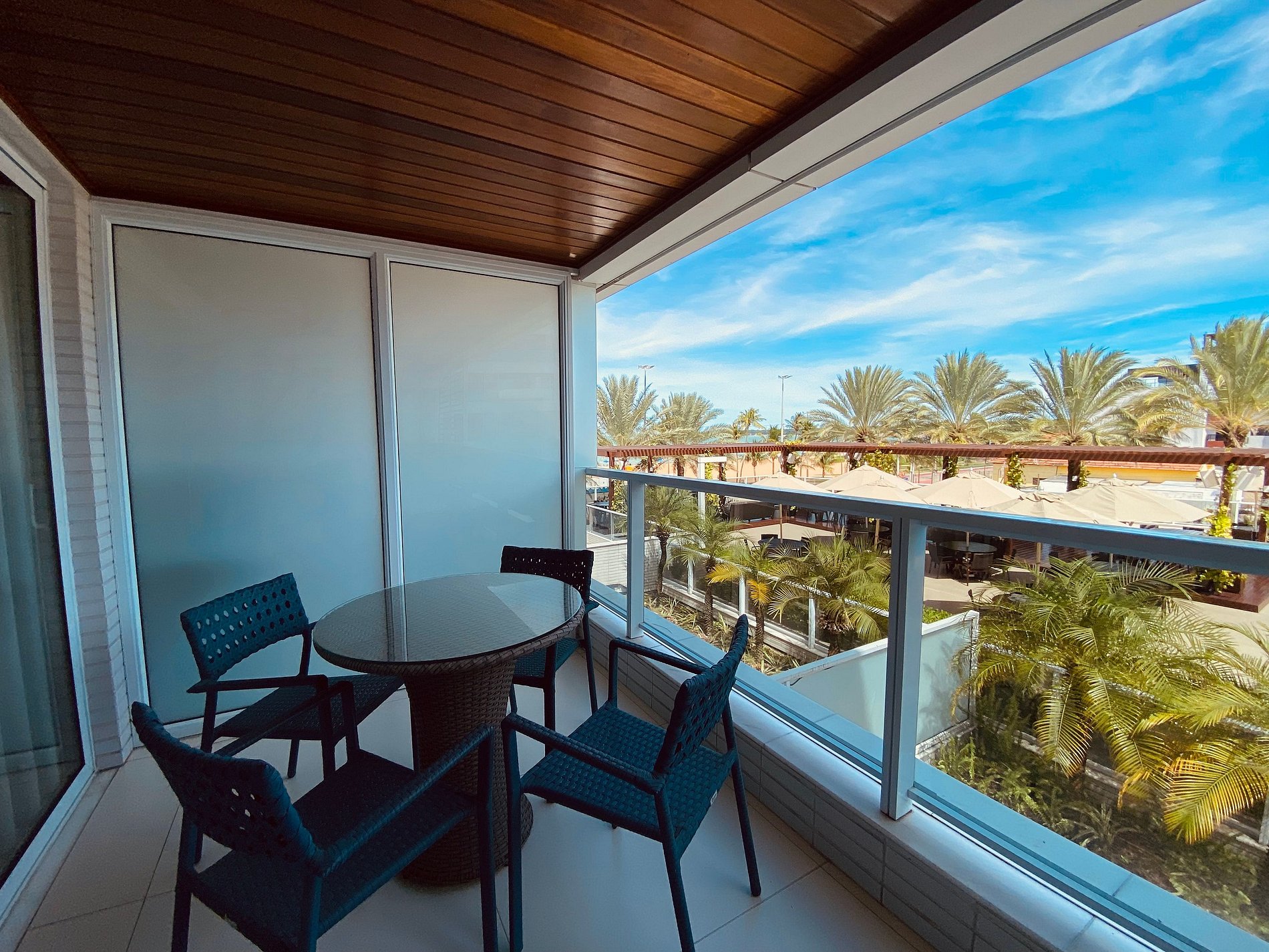 Todas as portas do apartamento são de vidro duplo, que o isolam acusticamente e mantém a temperatura interna por mais tempo.