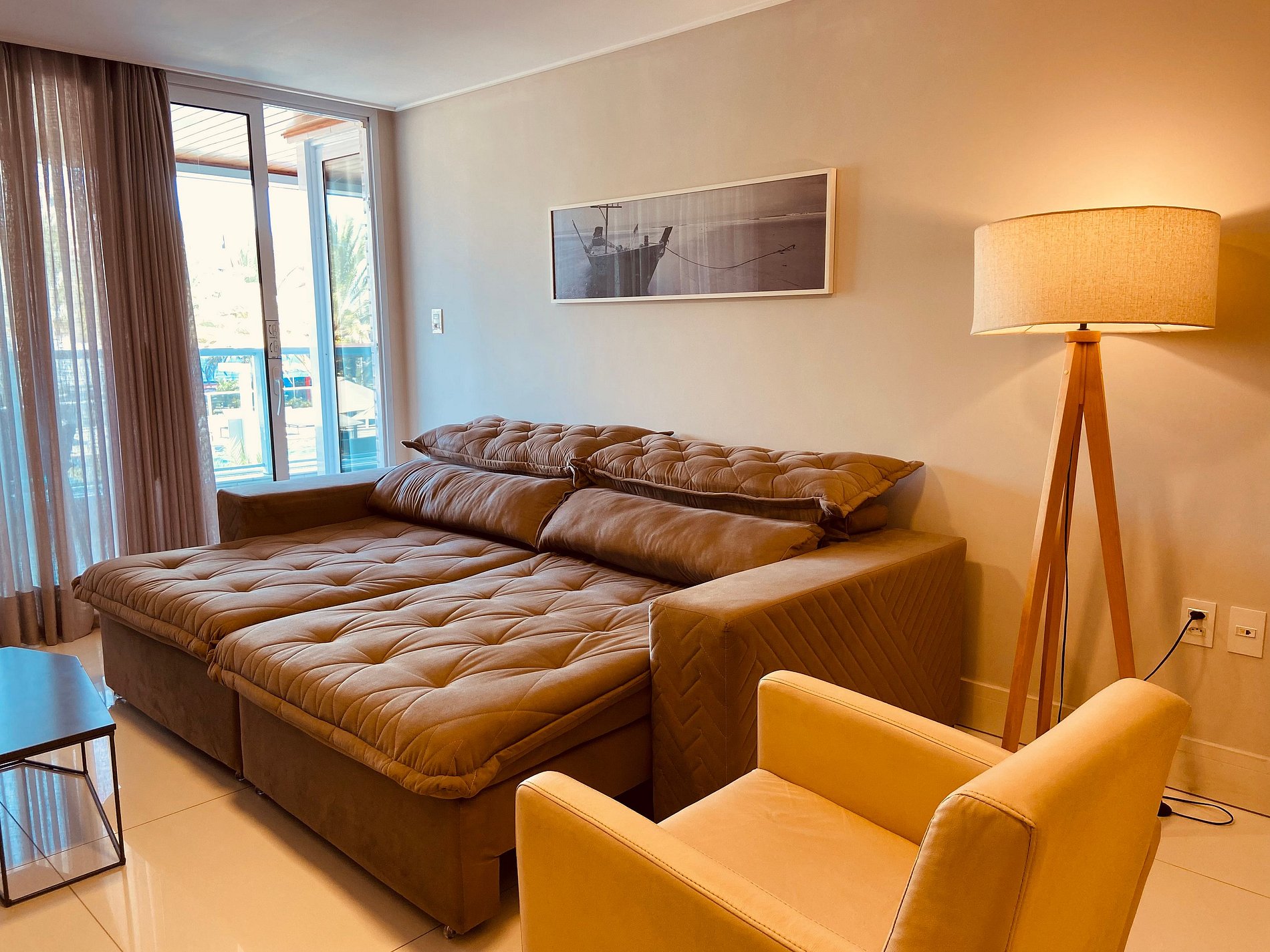 Todas as portas do apartamento são de vidro duplo, que o isolam acusticamente e mantém a temperatura interna por mais tempo.