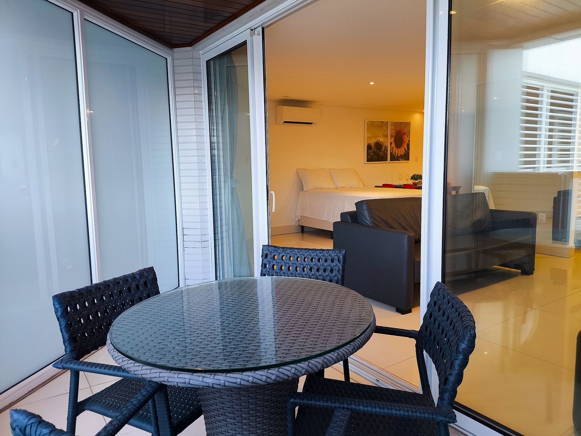 Todas as portas do apartamento são de vidro duplo, que o isolam acusticamente e mantém a temperatura interna por mais tempo.