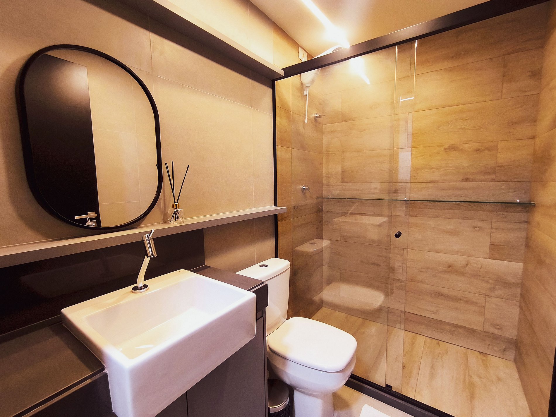O apartamento possui duas camas de casal confortáveis, uma smarTV com acesso a Youtube e Netflix, com ar condicionado e vista para a cidade, há um cabideiro e ferro elétrico. Banheiro com chuveiro elétrico e duchinha higiênica. A cozinha do apartamento é completa e compacta com todos os utensílios e eletrodomésticos para sua comodidade.