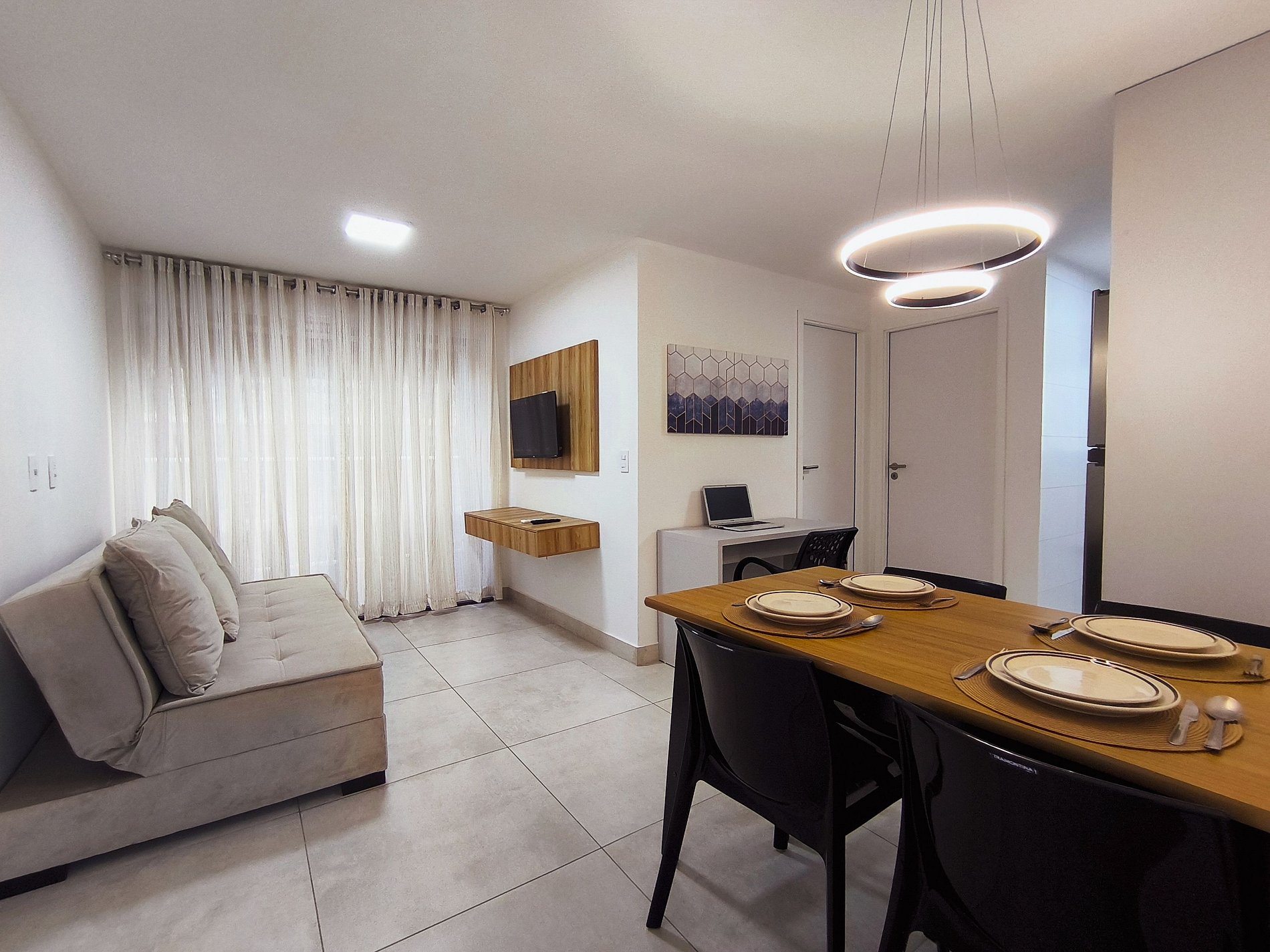 O apartamento, com 60m², é aconchegante e funcional. A cozinha é totalmente equipada, pronta para preparar suas refeições. Os quartos possuem cortinas blackout, proporcionando privacidade e um descanso ainda melhor, na suíte conta com cama de casal, cama de solteiro e uma cama auxiliar e ar-condicionado, no outro quarto possui uma cama de casal e ar-condicionado, garantindo noites tranquilas. A sala é versátil, com sofá-cama, mesa de jantar e TV Smart, perfeita para momentos de relaxamento ou entretenimento. Além disso, o apartamento oferece Wi-Fi de alta velocidade e inclui roupas de cama e banho.