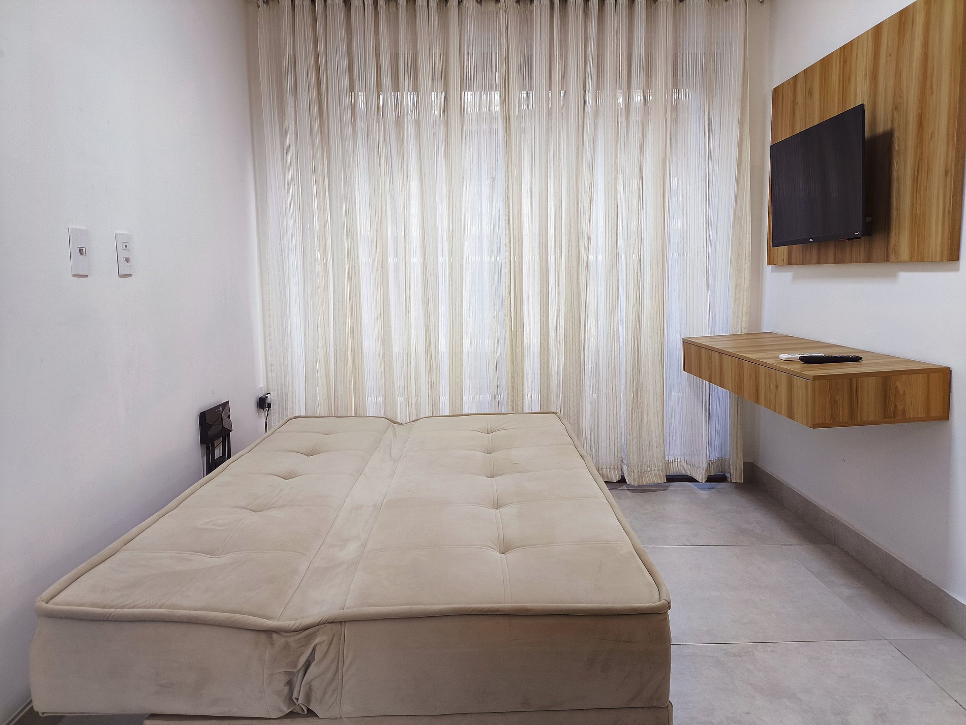 O apartamento, com 60m², é aconchegante e funcional. A cozinha é totalmente equipada, pronta para preparar suas refeições. Os quartos possuem cortinas blackout, proporcionando privacidade e um descanso ainda melhor, na suíte conta com cama de casal, cama de solteiro e uma cama auxiliar e ar-condicionado, no outro quarto possui uma cama de casal e ar-condicionado, garantindo noites tranquilas. A sala é versátil, com sofá-cama, mesa de jantar e TV Smart, perfeita para momentos de relaxamento ou entretenimento. Além disso, o apartamento oferece Wi-Fi de alta velocidade e inclui roupas de cama e banho.